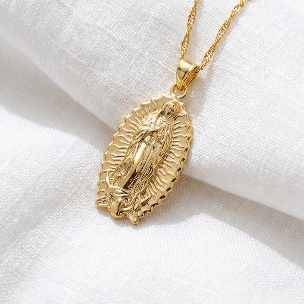 Compañía constante que escucha tus súplicas e ilumina tus pasos. Un símbolo de fe profunda que te abraza con un amor eterno y el amparo maternal que nunca te abandona.